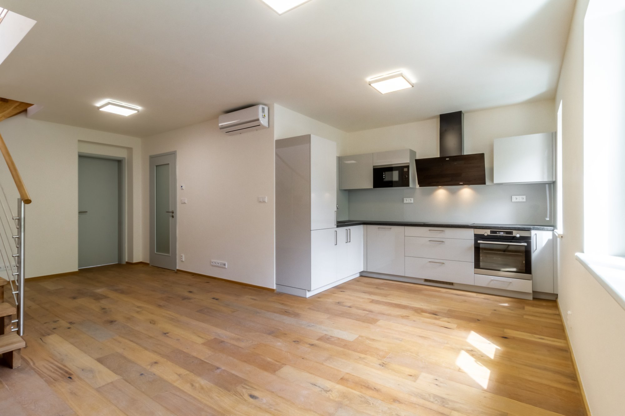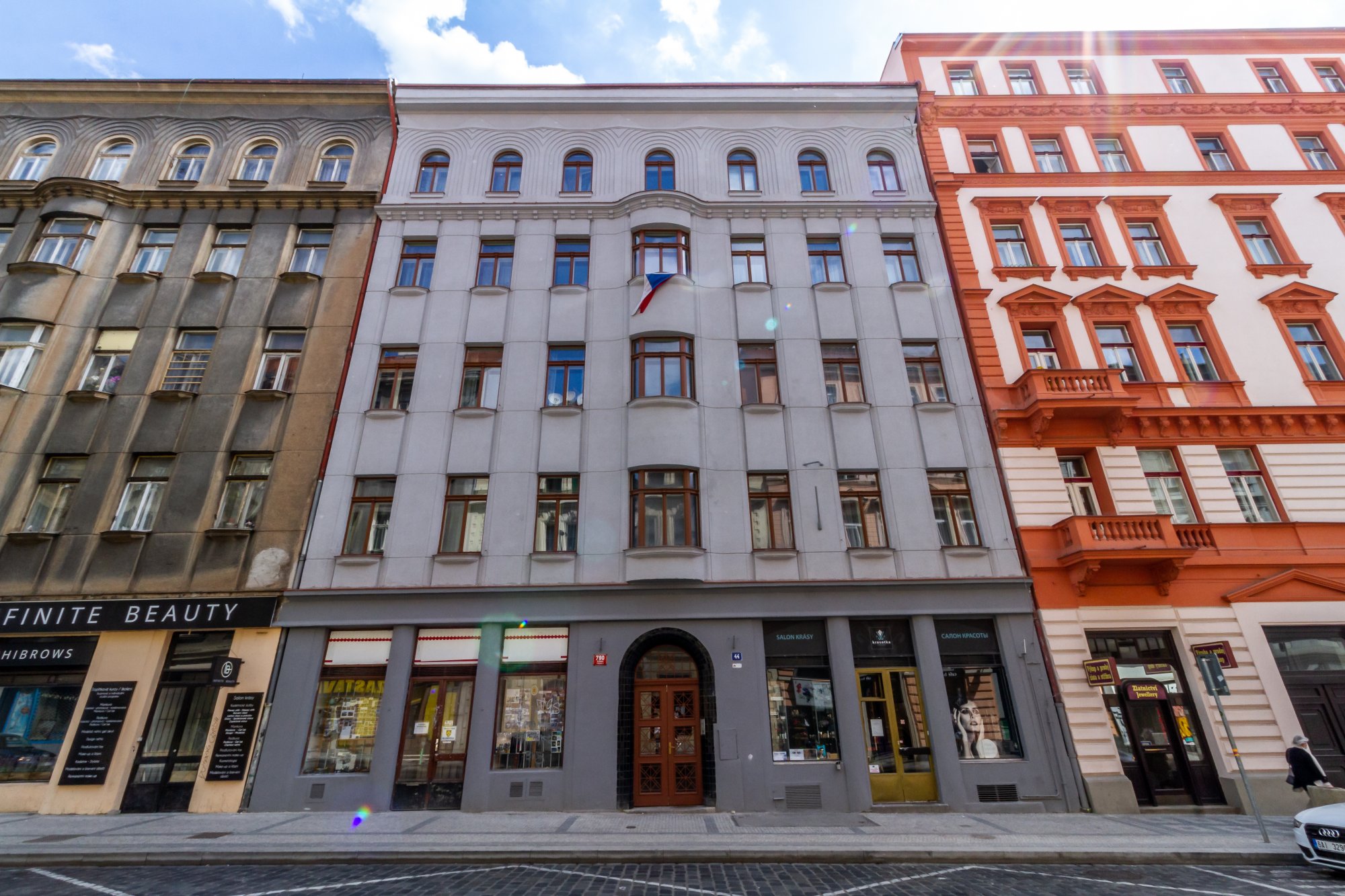 Orientace bytu do ulice na severozápadní stranu a do vnitrobloku na jihovýchodní stranu. Byt sestává ve spodním patře ze vstupní chodby, obývacího pokoje spojeného s vybavenou kuchyňskou linkou (digestoř, varná deska, trouba, myčka, MW, lednice, mrazák), samostatné ložnice a koupelny s toaletou. V horním patře je další ložnice, prostor pro šatnu, druhá koupelna s toaletou a nádherná slunná terasa do vnitrobloku. V bytě vše v moderním designu, nadstandardní materiály, velká okna, moderní schodiště , nerezové a skleněné prvky, dřevěné podlahy, podlahové topení v celém bytě, klimatizace, italské obklady a dlažby, sanita Grohe a WB, UPC internet s optickým kabelem. Dům po celkové rekonstrukci fasád, společných prostor, výtah .