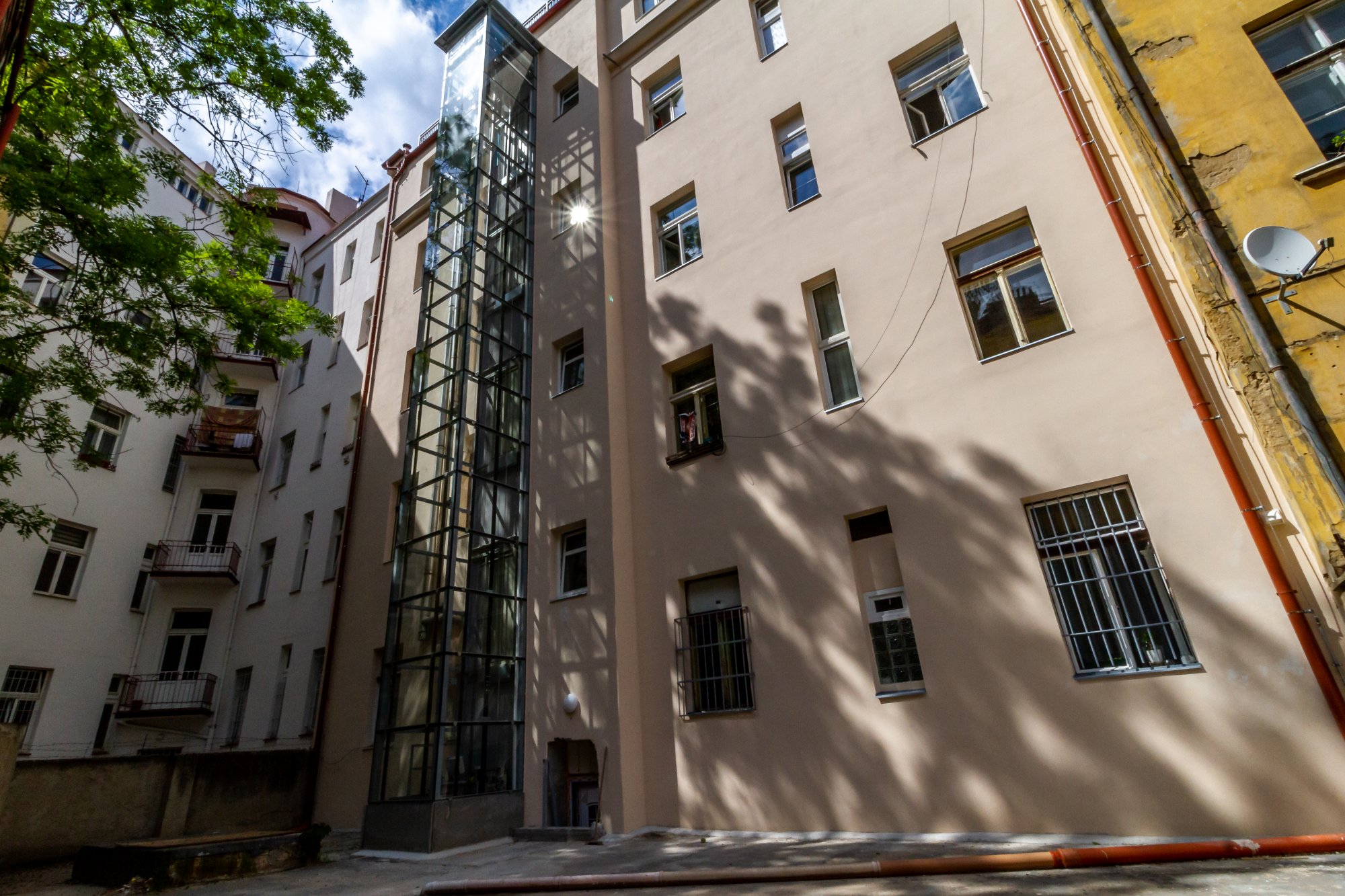 Z našeho portfolia prodáváme za 13.990.000,- Kč velmi tichý, mezonetový byt 3+kk 78 m2 s nádhernou terasou 20 m2 v 6 a 7. patře s výtahem v bytovém domě v ulici Husitská, Praha 3 – Žižkov, kolaudovaný v roce 2020.